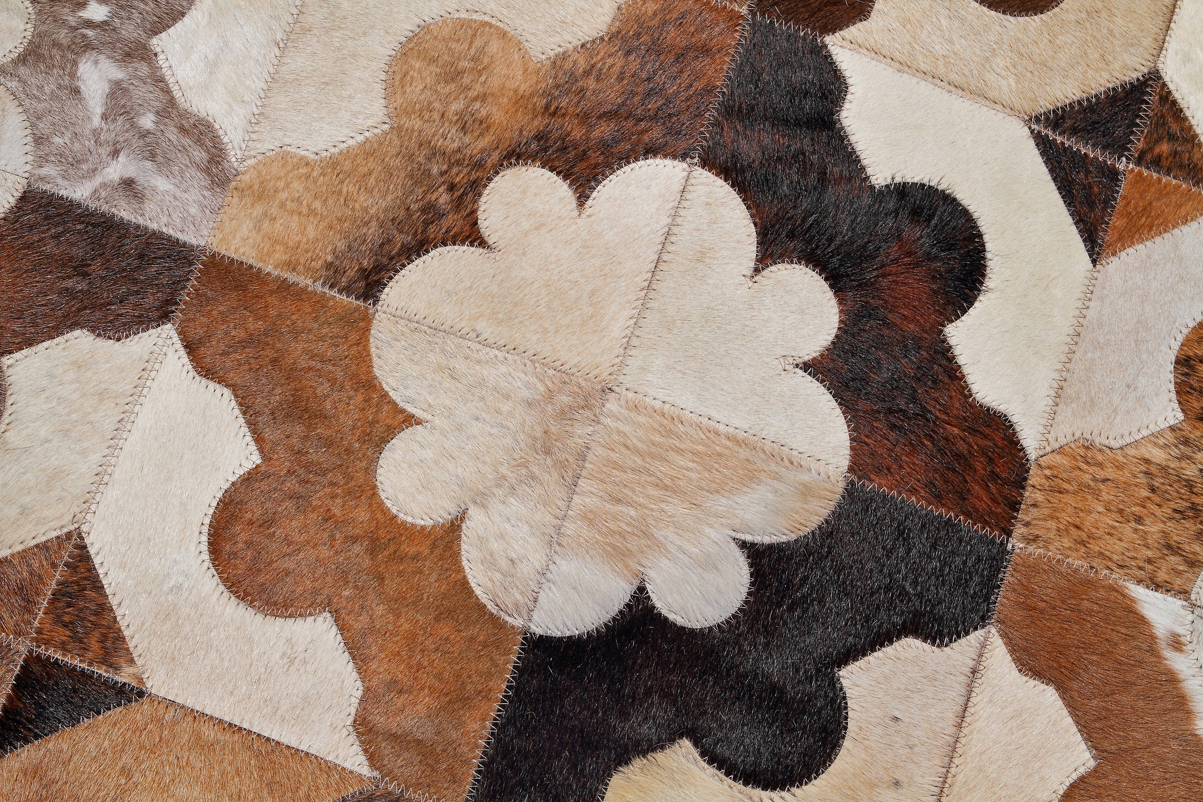 Note that each one is hand-sewn from carefully selected hides, so no two rugs are exactly alike. The hide is totally unique and will be individual in both look size and feel. They will in fact reflect the natural pigmentation of the animal from which they came.