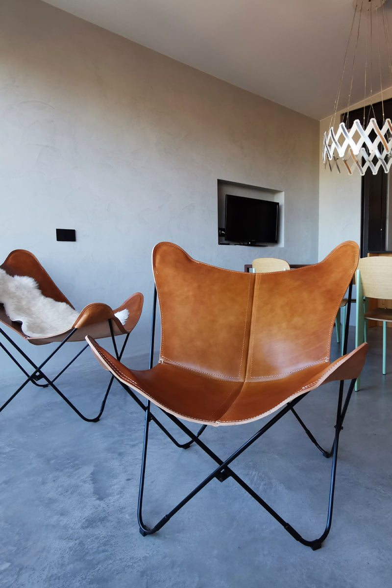 Silla mariposa de piel 100% artesanal. Para confeccionar esta funda Polo Antique se utiliza cuero curtido vegetal de alta calidad. El mismo cuero utilizado para fabricar botas y monturas de Polo. Las marcas naturales, cicatrices y arrugas confirman la autenticidad del cuero y realzan la belleza natural de este cuero Antiguo, especialmente diseñado para darle un toque vintage a su hogar.
